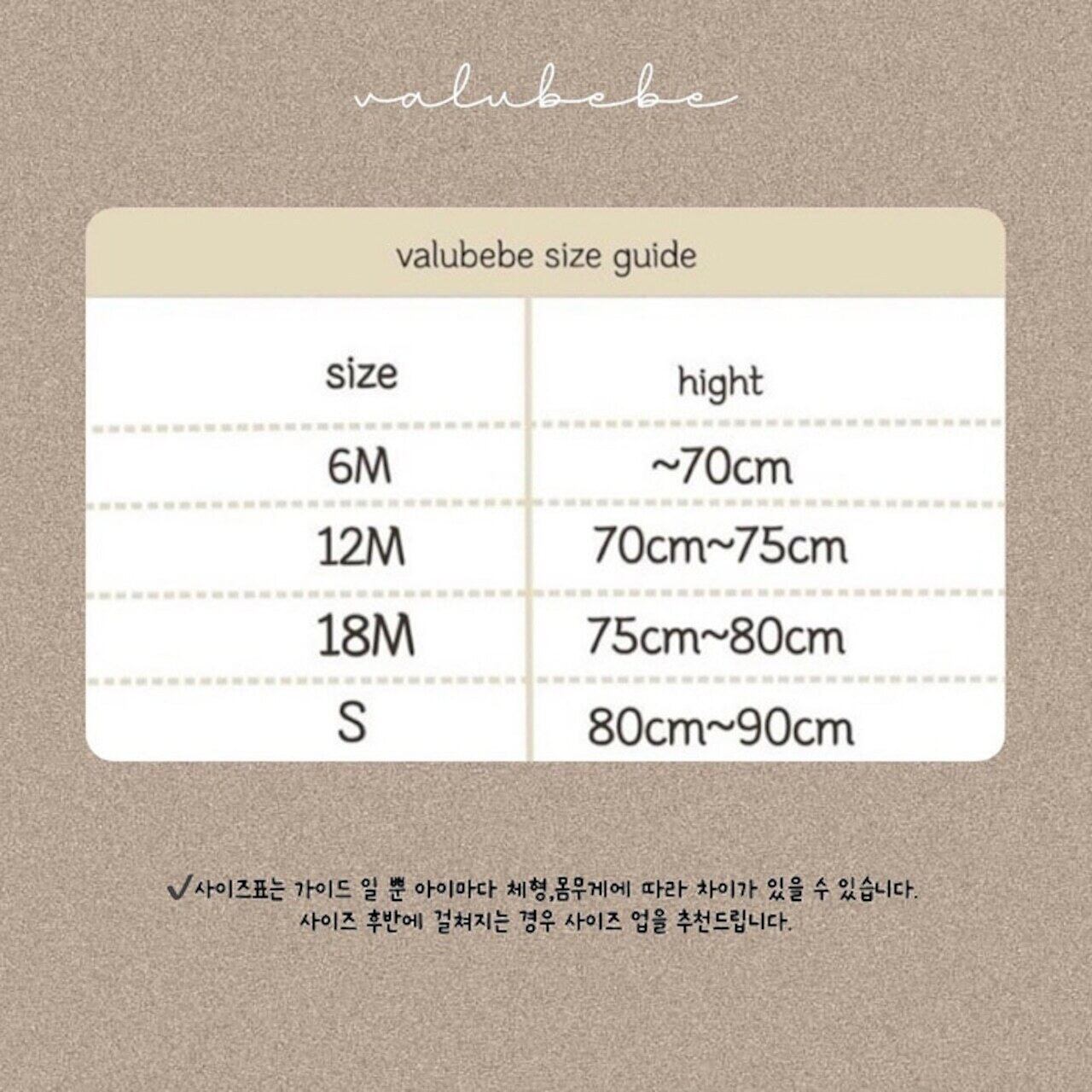 valubebe size spec
